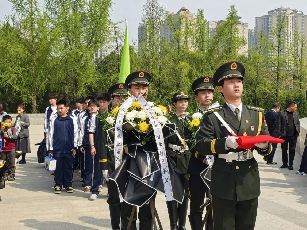 在清明节即将到来之际,4月2日下午,西安鱼跃职业高级中学教师代表、优秀团员、学生代表及国旗护卫队共50余人来到西安烈士陵园,以庄严仪式致敬革命先烈,寄托深切哀..